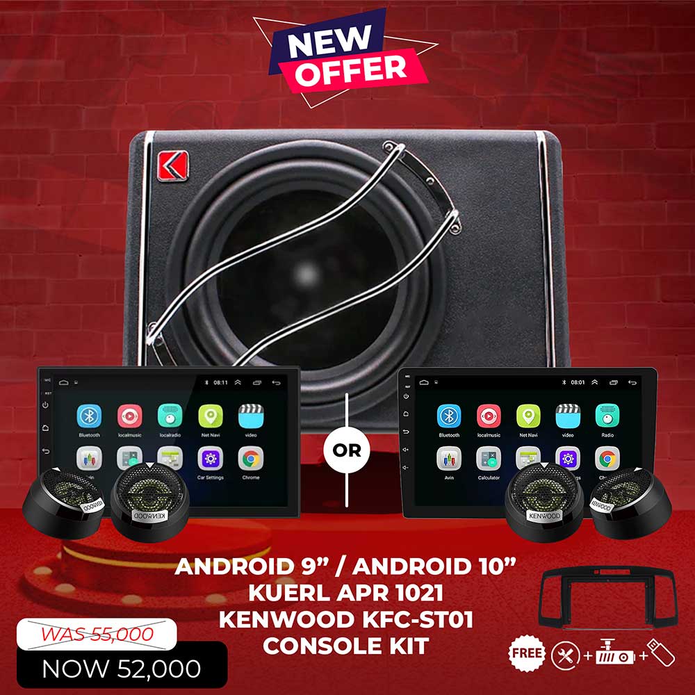 By purchasing a Android Car Audio System Package bundle from bass and treble Kenya, you can save money and time on the installation process, as everything you need is included in one package. Additionally, these bundles often come with a warranty, providing peace of mind knowing that your investment is protected. Package – (ANDROID 9″ / ANDROID 10″, KUERL 1021 APR, KENWOOD KFC-STO1)