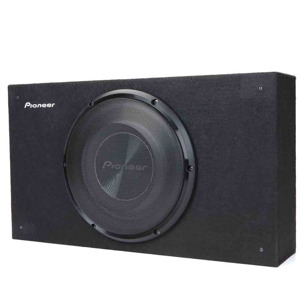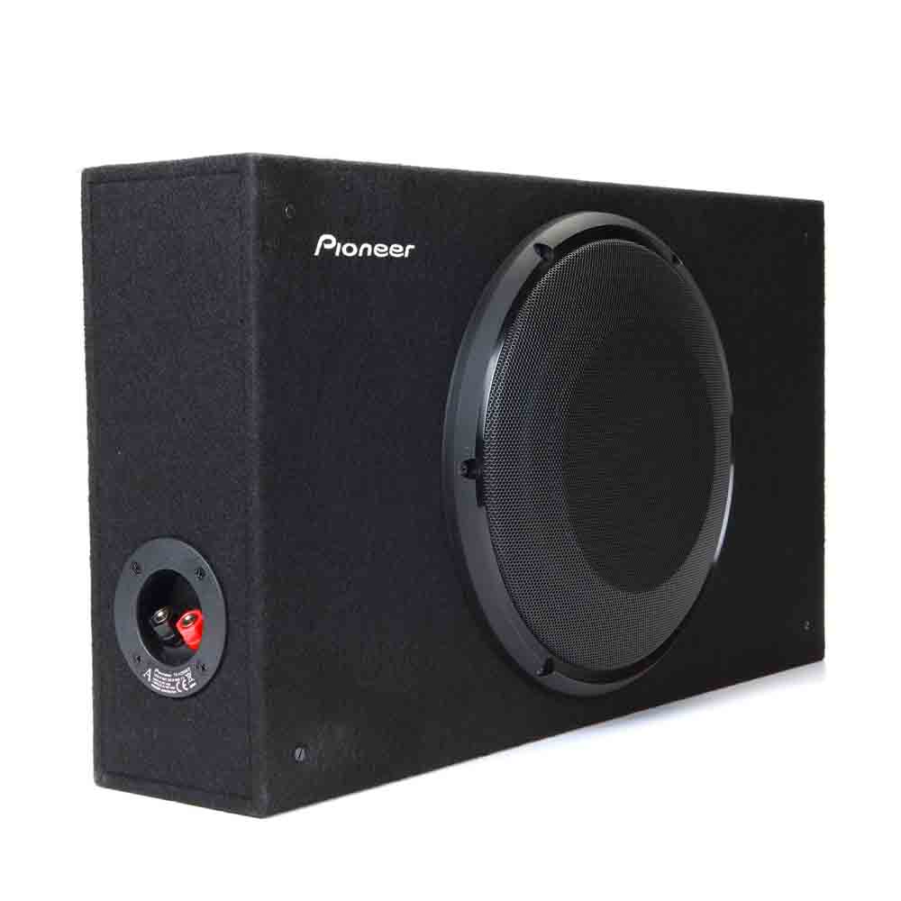 The enclosure houses a rugged Pioneer TS-A2500LB Car Subwoofers 10″ sub, which features an oversized, injected polypropylene cone with a rubber surround to punch out deep bass with less distortion. Its dual-spider design helps to stabilize the cone and support the linear movement needed to pump out big volume.